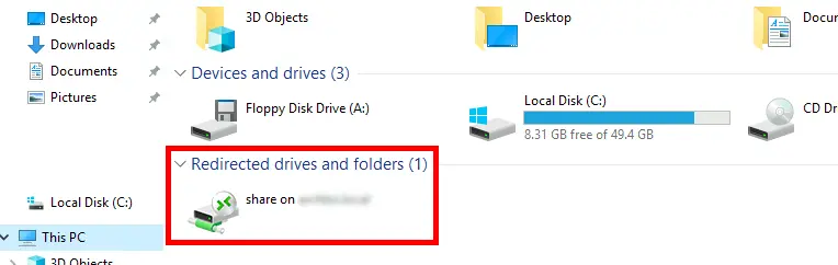 [user@host ~]$ mkdir /tmp/share;rdesktop 127.1:5555 -r disk:docs=/tmp/share -0 -r sound:remote