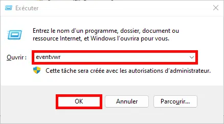 • Depuis l'ordinateur où une application est bloquée, ouvrir le journal d'évènements Windows :
