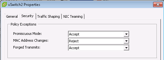 Under a VMware architecture we need to set the following sets to the vSwitch to make it works :
